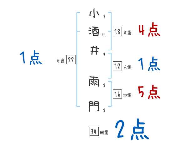 小酒井雨門さんの画数の鑑定結果