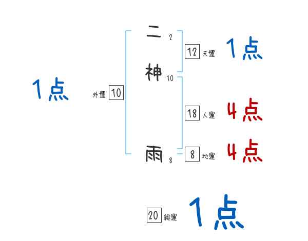 二神雨さんの画数の鑑定結果
