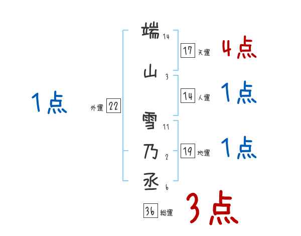 外運![]() | 端山雪乃丞さんの外運は22画の1つ星!努力することが苦手ないっぽう手先が器用。芸術性にも優れる。 生活面を象徴する運勢です。外部から受ける影響力を表し、結婚運、家庭運や職場、環境への順応性を表します。 |