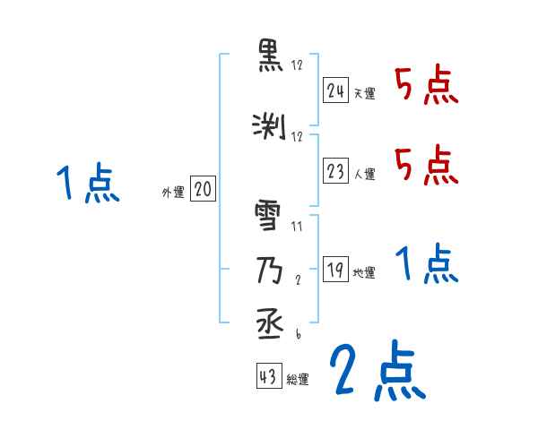 黒渕雪乃丞さんの画数の鑑定結果