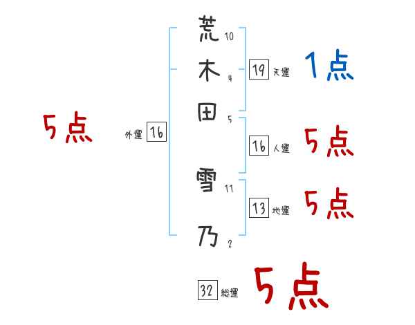 荒木田雪乃さんの画数の鑑定結果