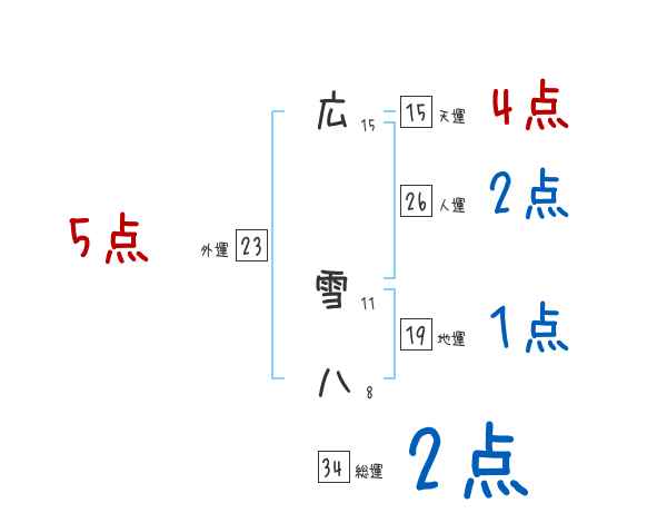 広雪八さんの画数の鑑定結果