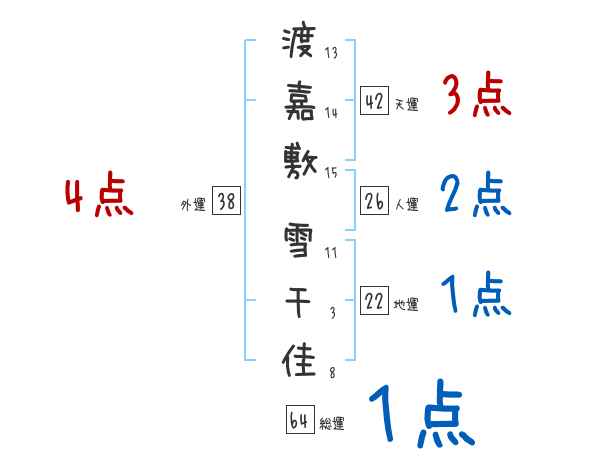 渡嘉敷雪千佳さんの画数の鑑定結果
