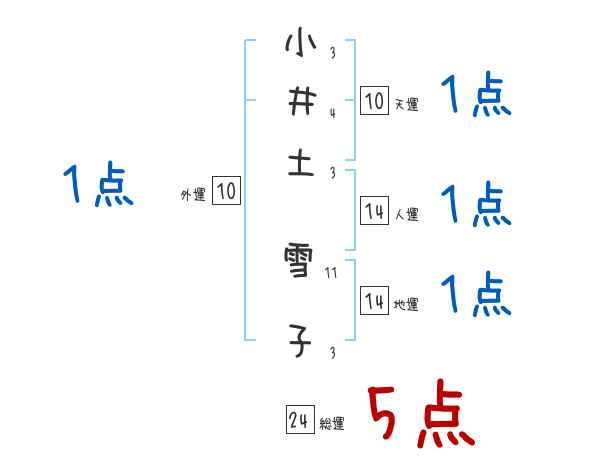 小井土雪子さんの画数の鑑定結果