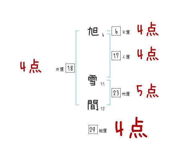 旭雪間さんの画数の鑑定結果