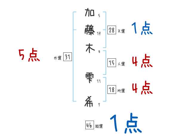 天運![]() | 加藤木雫希さんの天運は28画の1つ星!家庭環境に注意。スポーツで活躍できる能力があるかも。 家系が持つ宿命的な運勢を表します。祖先から受け継いだ苗字ですので自分の力が及びません。家柄を象徴します。 |