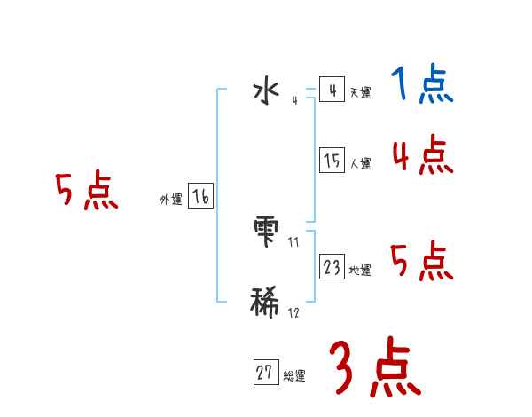 水雫稀さんの外運は16画の5つ星