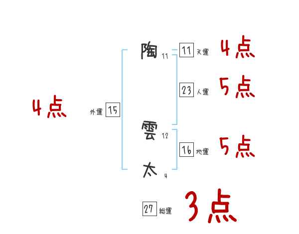 陶雲太さんの画数の鑑定結果