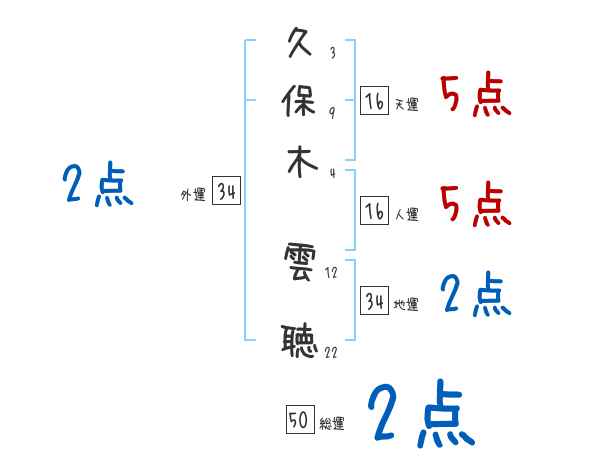 人運![]() | 久保木雲聴さんの人運は16画の5つ星!人望が厚く大きく発展する。逆転成功が見える。 性格や才能などを表す2番目に重要な運勢です。人間関係や協調性、社会的な成功に影響します。主に20歳から50歳ぐらいまでの中年期の運勢を表します。 |
