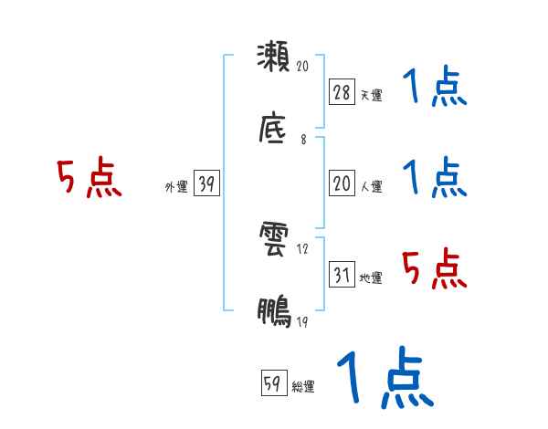 瀬底雲鵬さんの画数の鑑定結果