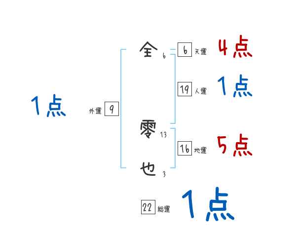 全零也さんの画数の鑑定結果