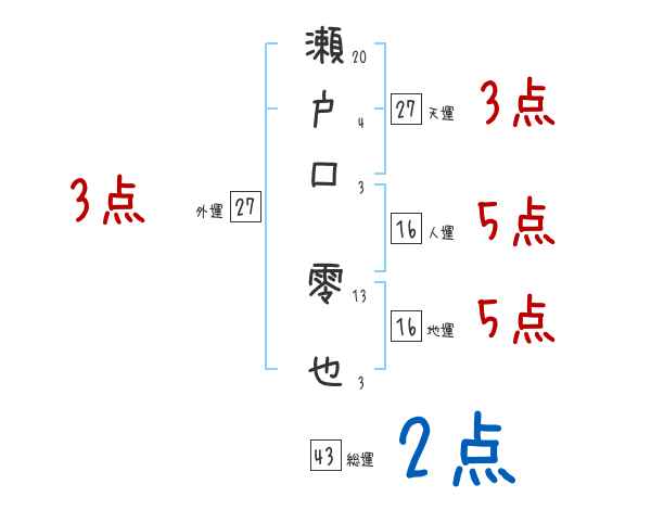 瀬戸口零也さんの画数の鑑定結果