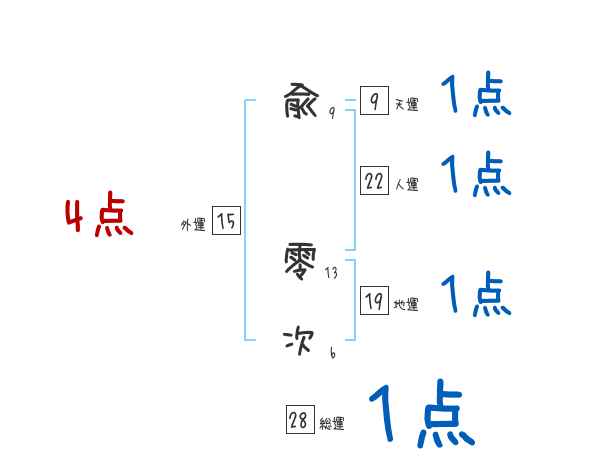 兪零次さんの画数の鑑定結果
