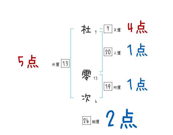 杜零次さんの画数の鑑定結果