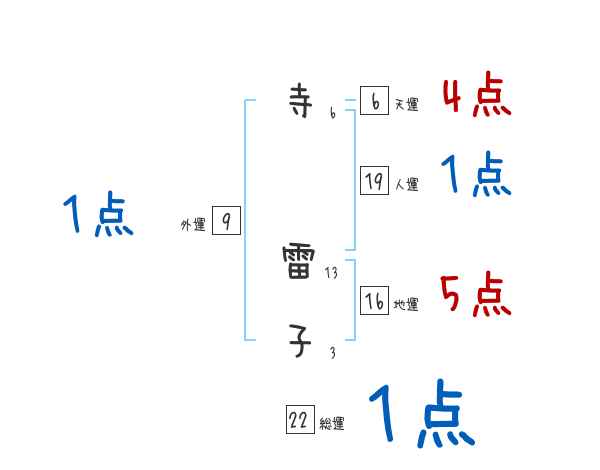 寺雷子さんの画数の鑑定結果
