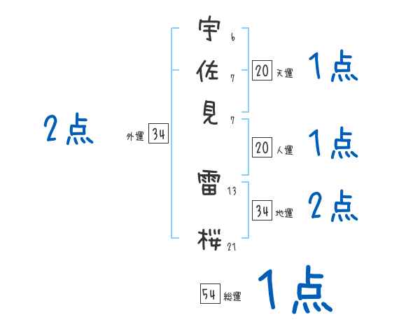 宇佐見雷桜さんの画数の鑑定結果