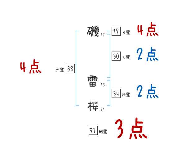 磯雷桜さんの画数の鑑定結果
