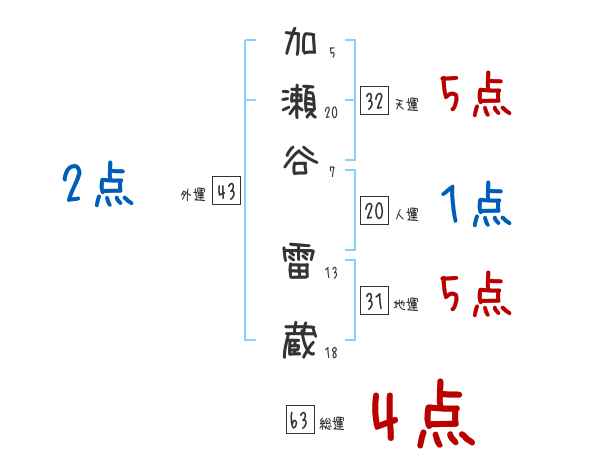加瀬谷雷蔵さんの画数の鑑定結果