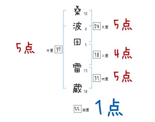 桑波田雷蔵さんの画数の鑑定結果