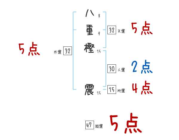 八重樫震さんの画数の鑑定結果