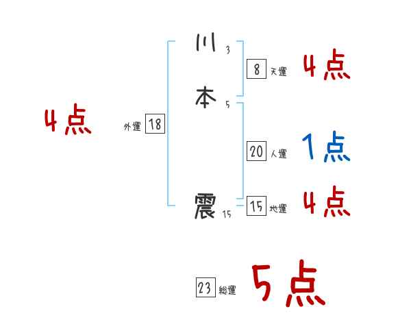 川本震さんの画数の鑑定結果