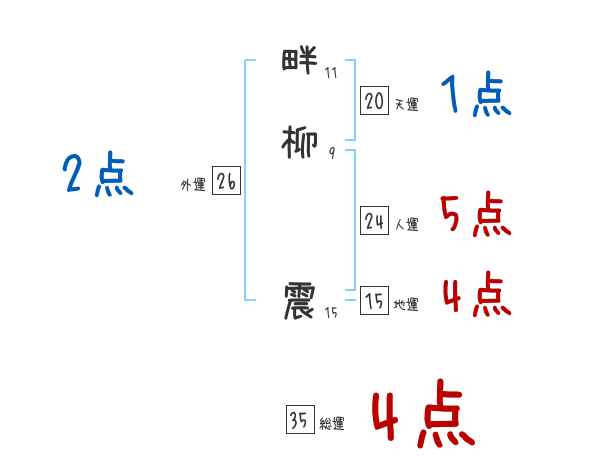 畔柳震さんの画数の鑑定結果
