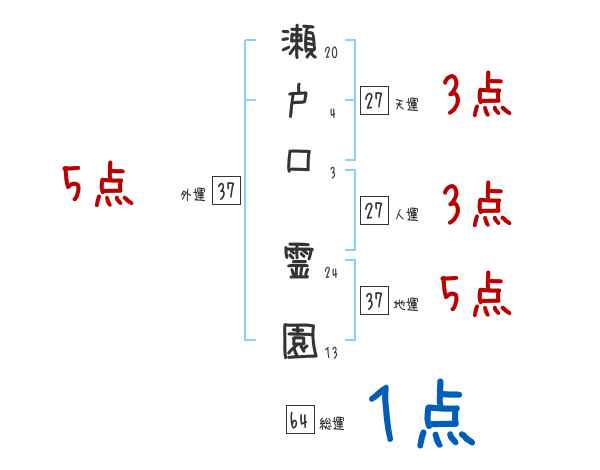 地運![]() | 瀬戸口霊園さんの地運は37画の5つ星!努力家で順応性に優れる。現実的な考え方ができ忠実に物事をこなす。 個性を表す基礎的な運勢です。性格形成や対人関係、行動力など家庭環境に影響されます。主に誕生してから20歳くらいまでの若年期の運勢を表します。 |
