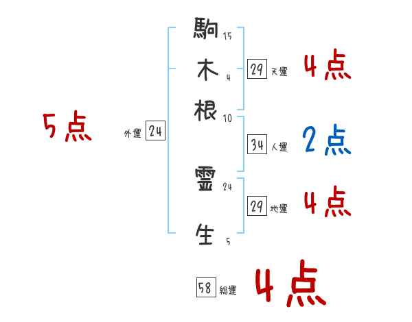 駒木根霊生さんの画数の鑑定結果