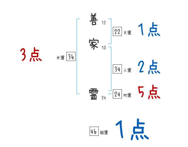 外運![]() | 善家霊さんの外運は36画の3つ星!先見性が豊かです。多少神経質で苦労することも。 生活面を象徴する運勢です。外部から受ける影響力を表し、結婚運、家庭運や職場、環境への順応性を表します。 |