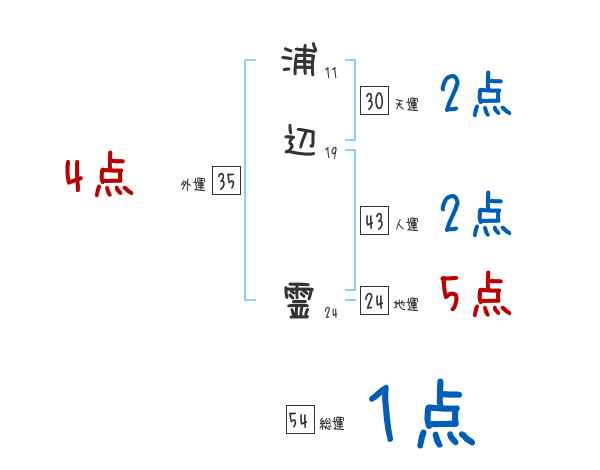 浦辺霊さんの画数の鑑定結果