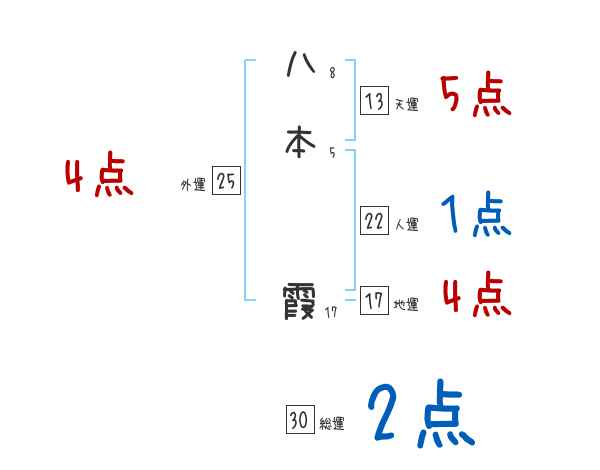 八本霞さんの画数の鑑定結果