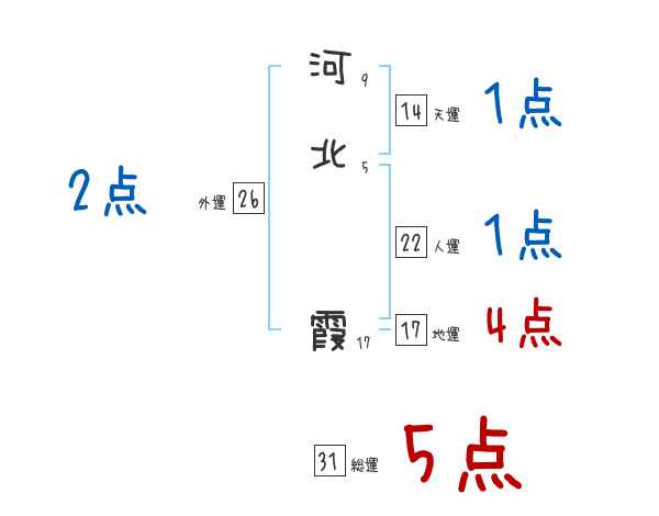 外運![]() | 河北霞さんの外運は26画の2つ星!波瀾万丈かも。信頼できる人を大事にしましょう。 生活面を象徴する運勢です。外部から受ける影響力を表し、結婚運、家庭運や職場、環境への順応性を表します。 |