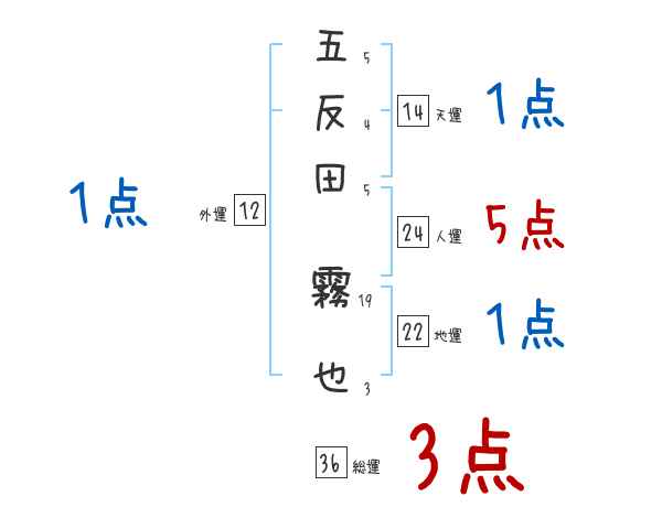 天運![]() | 五反田霧也さんの天運は14画の1つ星!人に対して優しいがストレスを溜め込みがち。人間関係のトラブルを避けるよう気をつけましょう。 家系が持つ宿命的な運勢を表します。祖先から受け継いだ苗字ですので自分の力が及びません。家柄を象徴します。 |