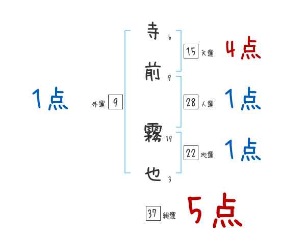 寺前霧也さんの画数の鑑定結果