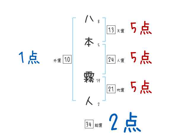 八本霧人さんの画数の鑑定結果