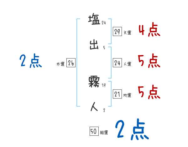 塩出霧人さんの画数の鑑定結果