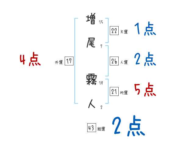 増尾霧人さんの画数の鑑定結果