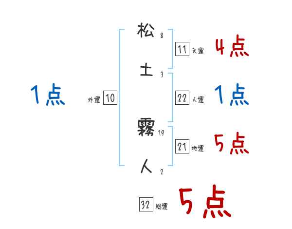 松土霧人さんの画数の鑑定結果