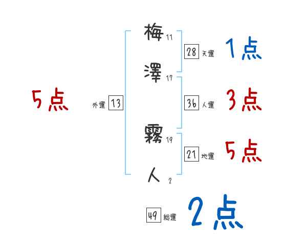 梅澤霧人さんの画数の鑑定結果