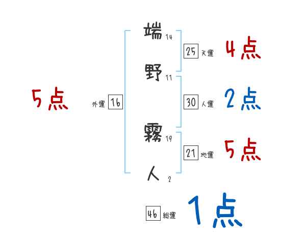 端野霧人さんの画数の鑑定結果
