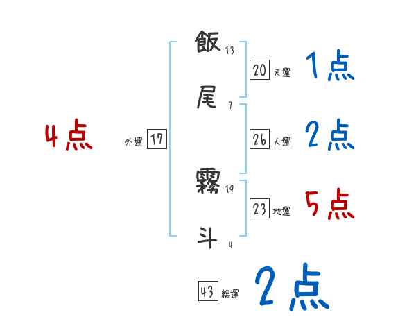 飯尾霧斗さんの画数の鑑定結果