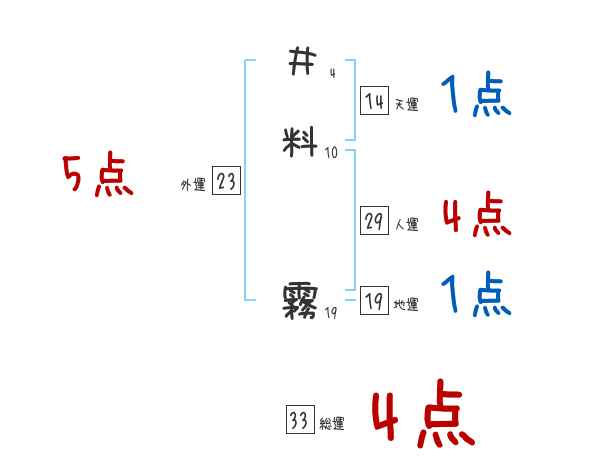 井料霧さんの画数の鑑定結果