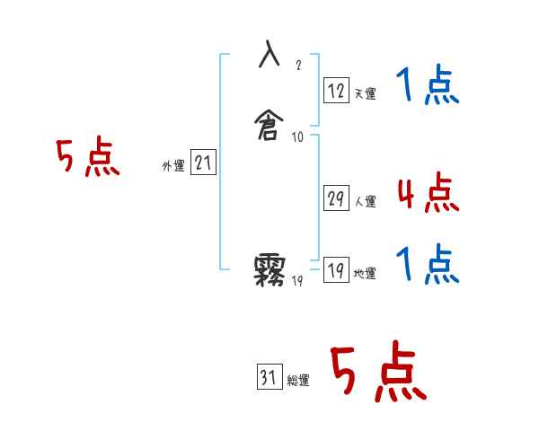 入倉霧さんの画数の鑑定結果
