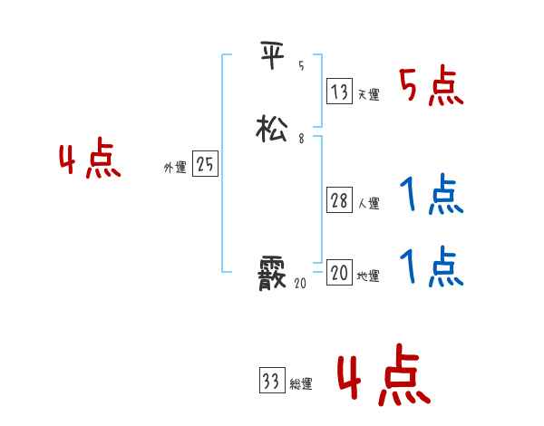 天運![]() | 平松霰さんの天運は13画の5つ星!才能に恵まれ人気がある。名声を手に入れる。円満な人生。 家系が持つ宿命的な運勢を表します。祖先から受け継いだ苗字ですので自分の力が及びません。家柄を象徴します。 |