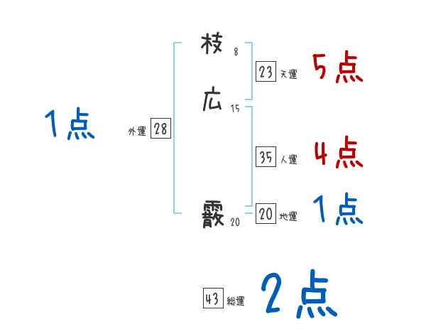 枝広霰さんの画数の鑑定結果