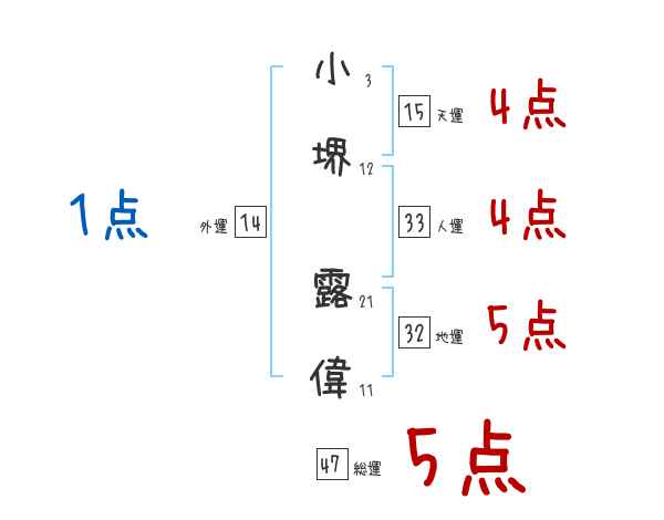 小堺露偉さんの画数の鑑定結果