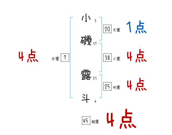 小磯露斗さんの画数の鑑定結果