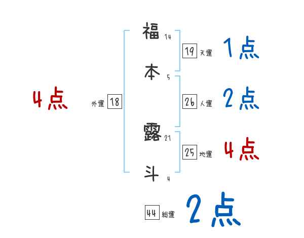福本露斗さんの画数の鑑定結果