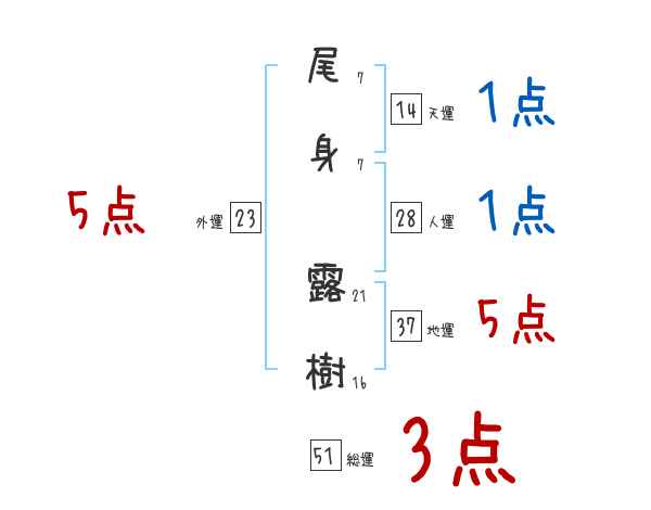 尾身露樹さんの画数の鑑定結果