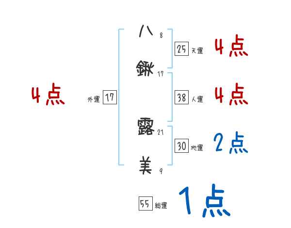 八鍬露美さんの画数の鑑定結果